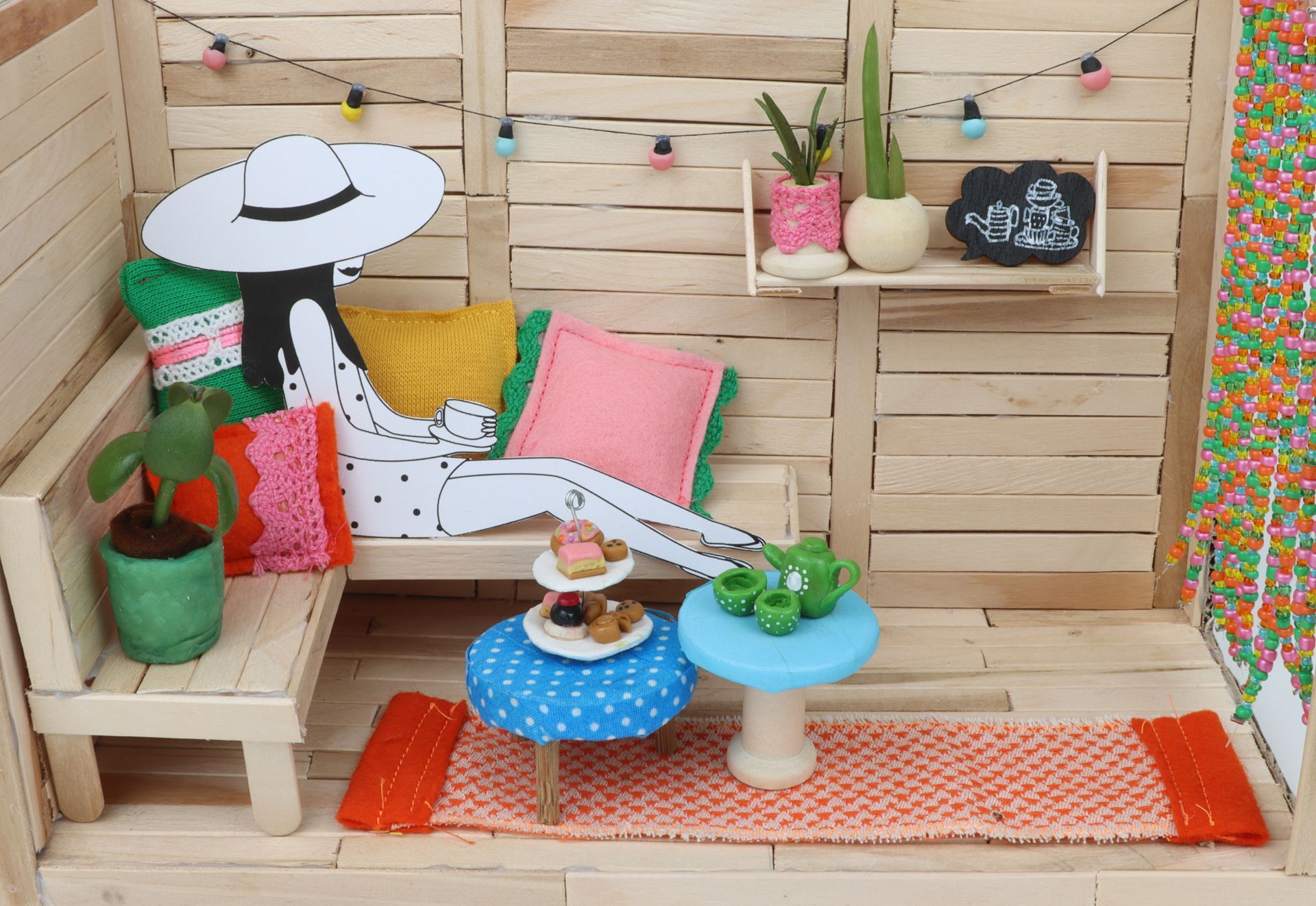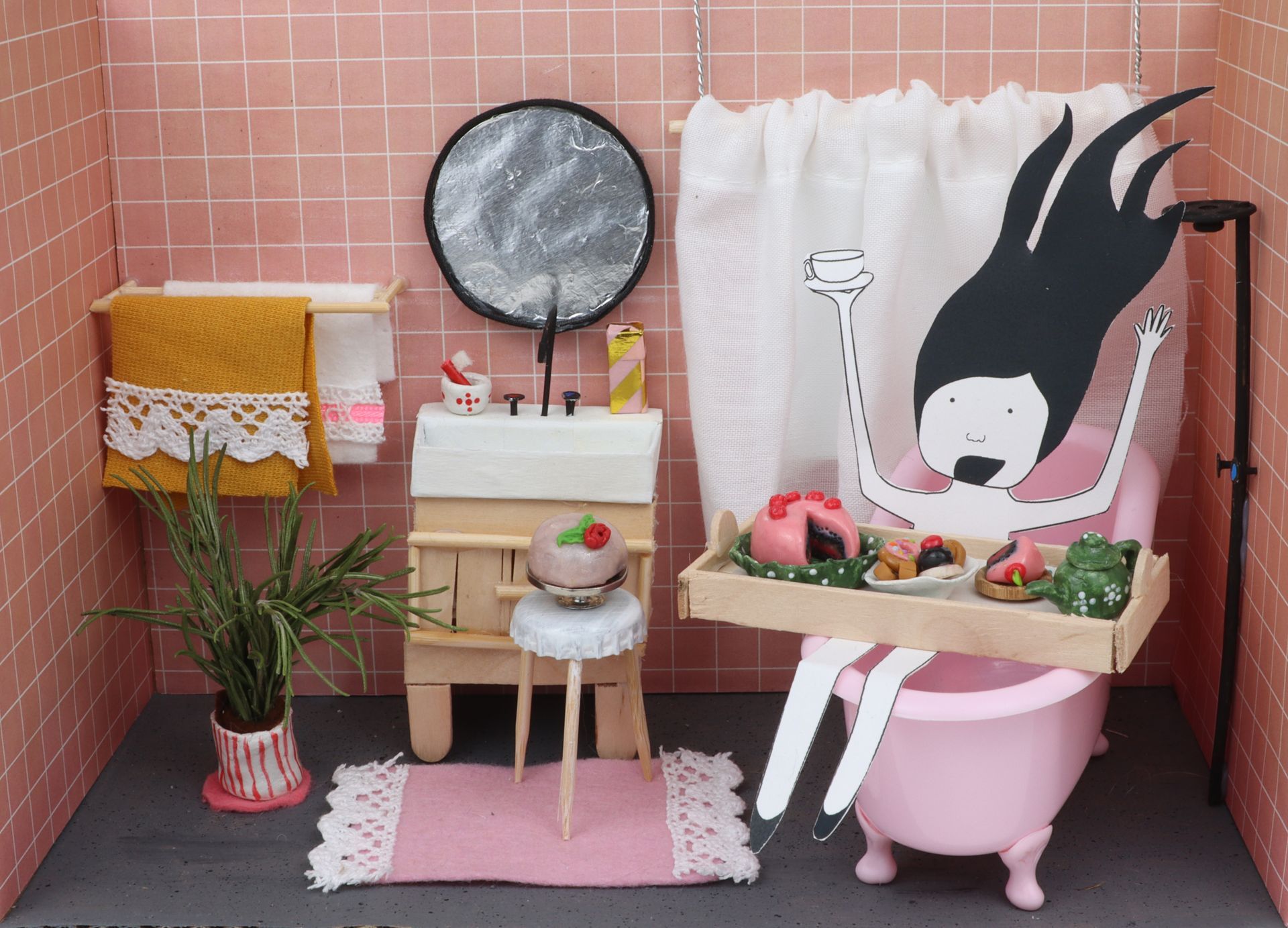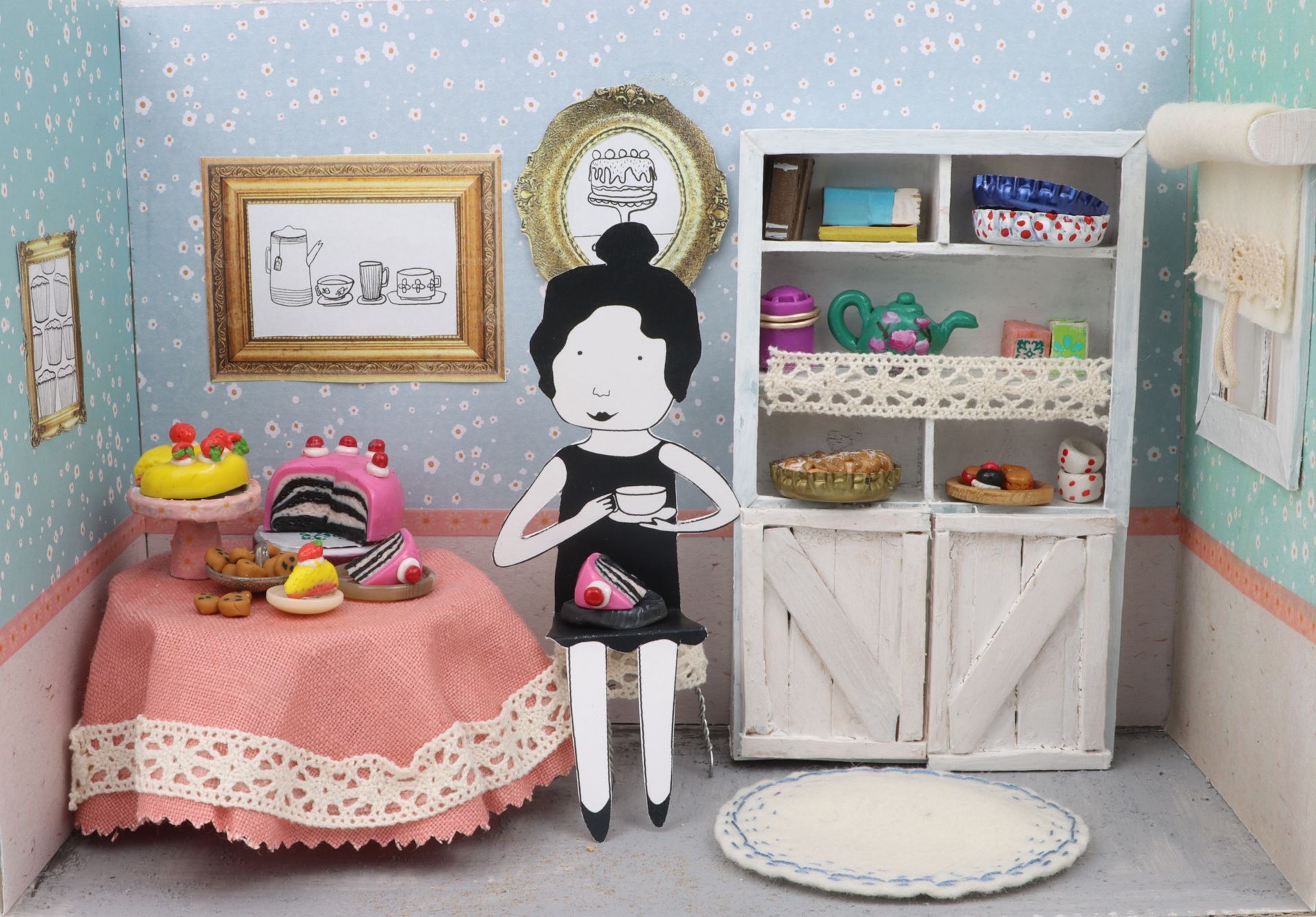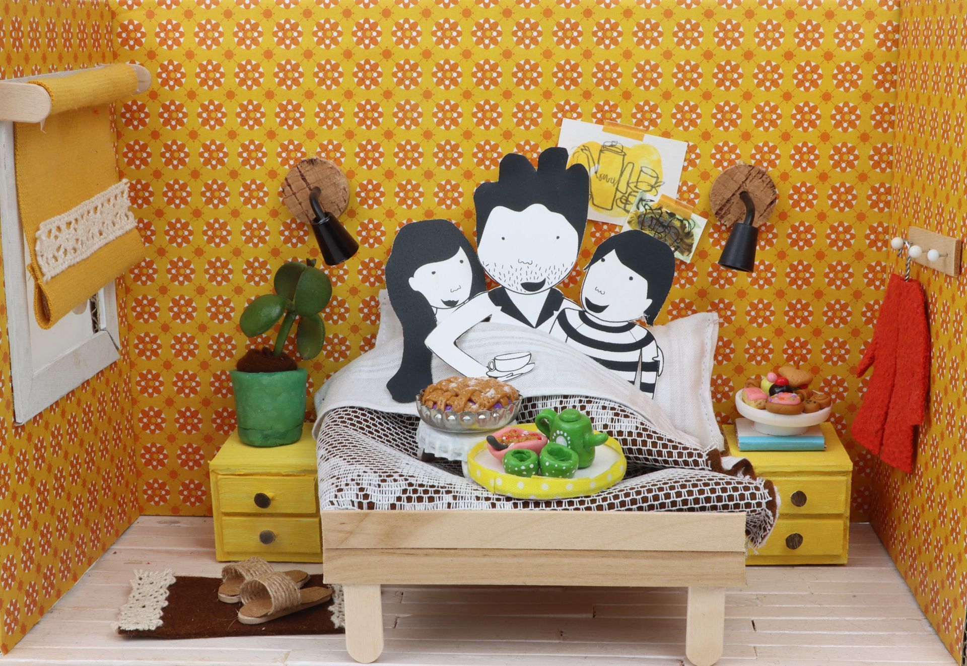 Deze illustraties maakte ik voor verschillende soorten afbakbroodjes die gebruikt konden worden voor een high tea. Ik maakte mini-interieurs van verschillende ruimtes waar de vrolijke personen genieten van deze verschillende heerlijkheden.